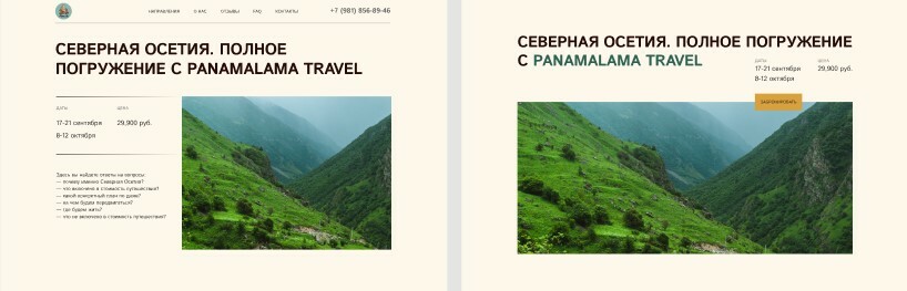 This website should be easy to understand because all product purchase decisions are made while scrolling through Instagram. Then, after reviewing the profile, the user wants to find all the data about future trips. The site also helps to reinforce the feeling of quality and increase user loyalty.