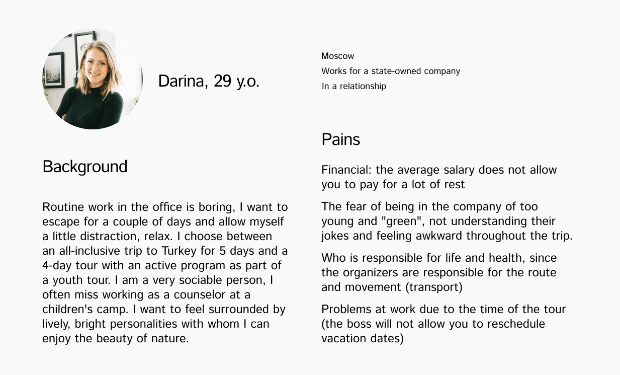 Users have a lot of fears: that they will be deceived, that it is dangerous to go on a tour alone with strangers. You need to prove your presentability by reinforcing the initial impression with photos and reviews. Also, a detailed description of the trip played a key role in making a decision.